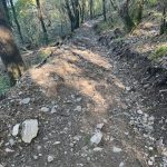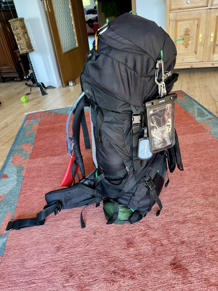 For a long time, my bones, especially my knees – bearing most of the stress – have endured all the strain without complaint. The bandage on the left and the Mueller band on the right have obviously served as good support. But for the past two days, my right knee has been bothering me. Not severely and not constantly, but noticeable. And while my right hip/iliotibial band needed the support of my walking stick from the very beginning, the left side is now also making itself felt during particularly strenuous sections. In short, while my muscles have obviously adapted to the significantly increased demands and my feet are also „playing along“ without complaint, my skeletal system seems increasingly less tolerant of the constant additional load of 15 kilos, especially with constant ascents and descents. And without a doubt, the constantly high physical strain combined with extremely slow progress also leads to a certain mental fatigue.