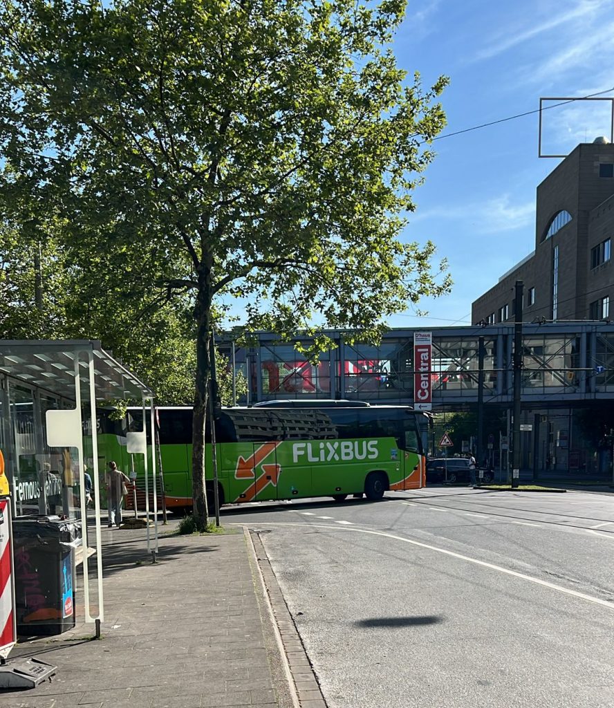 It’s another eight hours to get home. The weather is sunny, but the landscape of northern France is still pretty dull, not to mention Belgium. So there are more or less successful attempts to sleep/doze, followed by a refueling/smoking/leg – resting break at the German border. Later, there are stops at Cologne Airport and Leverkusen Station before the big double-decker bus finally turns into the entrance to Düsseldorf’s central bus station.