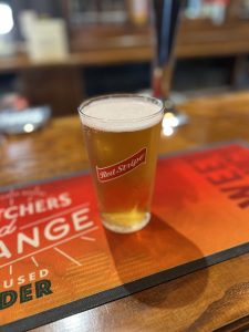 Now just a good kilometer more – on a flat path – and the first half of this monster stage would be complete. On the way, I get chatting with a charming, super – British older lady, and finally I arrive at the Bush Inn, and I can already see the pint with my name on it in my mind.