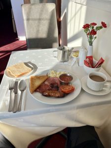 My table is reserved for 8:00 p.m., and I finally choose the fish I’ve been missing until now from the menu – with chips, of course. Of course, not ordinary fish and chips, but haddock breaded in beer sauce and so on. A truly magnificent specimen arrives, and for the first time since my stay here, I eat really well and in abundance.