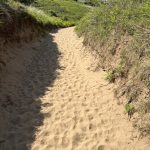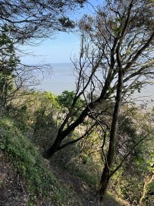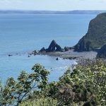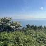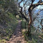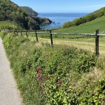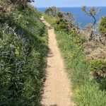From there, I climb again – what else? – and soon I’m high enough for beautiful views of the harbor, the town, and the coast to the right and left. During a breather, I get chatting with a friendly dog walker. He moved here with his family and raves about the area, without being blind to the disadvantages of country life. He also hikes the trail, in stages with his daughter, and knows the challenges. Therefore, they have their luggage transported – what a luxury.