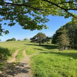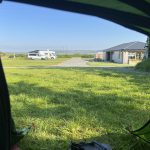 Then, just beyond the edge of the village, right next to the SWCP, is the local tennis club’s court. And next to it, a little off the path, is a beautiful green, flat grassy area! No houses around, no animals, bingo! This is it, my wild camping spot for the night!