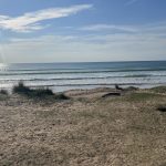 A little further on, I find a nice spot – „life is a wave“ – where I buy a welcome beer, overpriced for the location. While enjoying it, I do the usual campsite check: Yes, I find one not far from the town center – very nice!