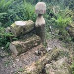 I read about it in the guidebook: Robert Stephen Hawker was vicar of Morwenstow parish from 1834 until his death in 1875. He built this small hut out of driftwood below the cliff edge. He is said to have often sat there, smoked morphine, and written. Apparently a somewhat eccentric figure in a burgundy frock coat, blue sweater, yellow poncho, and high fishing boots, he is said to have excommunicated his cat for mousing on Sundays and to have had a pet pig. His works certainly don’t seem to have been unknown to the public at the time.