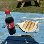 It’s not far to the Coop, and the usual supplies go into the shopping basket: bananas as a quick – acting and non – stressful energy booster, Babybel and Bifis for snacks, sandwiches and instant coffee and milk sachets (breakfast), pasties (dinner), and – today’s pub visit was canceled – a four – pack of beer. All of this is then carried back to the campsite at a more relaxed pace, where some of it is used immediately. Then the exertion of the past two days takes its toll, and an early night’s rest is called.