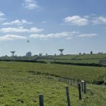 It’s not long before unusual silhouettes appear on the horizon. As I get closer, I notice: large space telescopes and white radar balloons are spread out over a vast area near the cliffs. „The Big Ear“ immediately springs to mind. What could it be listening for?