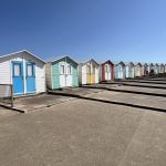 When I finally pass the facility, it’s actually not that far to the day’s destination, Bude. At some point, I make a final descent, and then I’m standing on the beach, lined with summery, colorful beach huts of all colors.