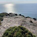 Now it gets truly spectacular: The path runs narrowly along a cliff ridge that is also not wide, straight towards the sea, before finally making a sharp left turn high above the sea and then winding its way down the slope in a steep (as usual) zigzag course.
