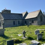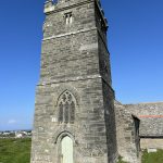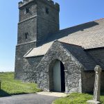 St. Materiana lies outside Tintagel on the cliff, its Union Jack – adorned tower is visible from afar. It’s not far; a footpath through meadows and then a short stretch on asphalt brings me to the church in the middle of an extensive cemetery. A church site for 1400 years, the current building is venerable, and inside, you can feel the breath of the centuries.
