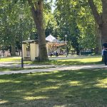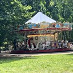 Afterwards, I find a spot in the sun next to a pretty antique carousel and strike up a little chat with a tall black Frenchman. Time passes quickly, and soon I see that the departure point for my next bus has been set; I pack up again and head there. This time it’s a double – decker, and I have a seat upstairs. This bus, with the final destination of Copenhagen, is fortunately another Flix original and fairly new, so everything’s fine.