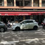 The delay in London saves me an hour of waiting here. Leaving the bus station, I’m unpleasantly struck by the rather cool temperature there; yesterday in England it was 25 degrees. I while away the time in the park for a while, then explore the surrounding area a bit. I come across a typical French bistro that looks good. It is; the croqu’elle and café creme are excellent, although the Parisian prices aren’t quite as good.