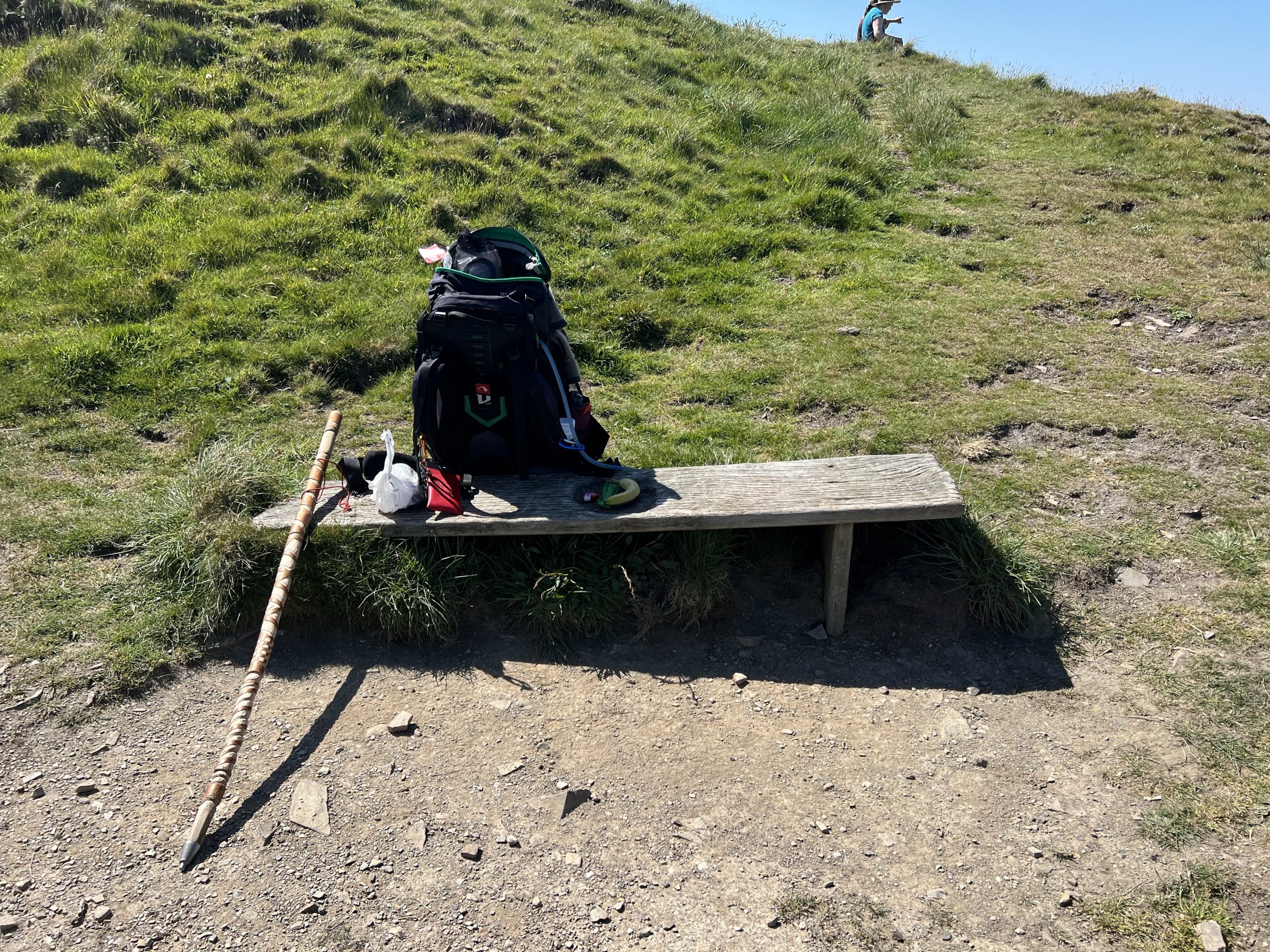 Lange haben meine Knochen, insbesondere die maximal beanspruchten Knie, alle Strapazen klaglos durchgehalten. Die Bandage links und das Mueller-Band rechts haben offensichtlich als Unterstützung gute Dienste getan. Seit zwei Tagen aber meldet sich mein rechtes Knie. Nicht doll und nicht ständig, aber merklich. Und während die rechte Hüfte/Iliotibialband? schon von Anfang an der Unterstüzung des Wanderstabes bedurfte, macht sich nun auch die linke Seite bei besonders lastintensiven Abschnitten bemerkbar. Kurzum, während sich die Muskulatur den deutlich gewachsenen Anforderungen offensichtlich angepasst hat und auch die Füße klaglos „mitmachen“, scheint der Skelettapparat die andauernde Mehrbelastung von 15 Kilo, insbesondere bei permanentem Auf- und Absteigen, zunehmend weniger zu tolerieren. Und ganz ohne Zweifel führt die ständig hohe körperliche Belastung in Verbindung mit extrem langsamem Vorankommen auch zu einer gewissen mentalen Ermüdung.