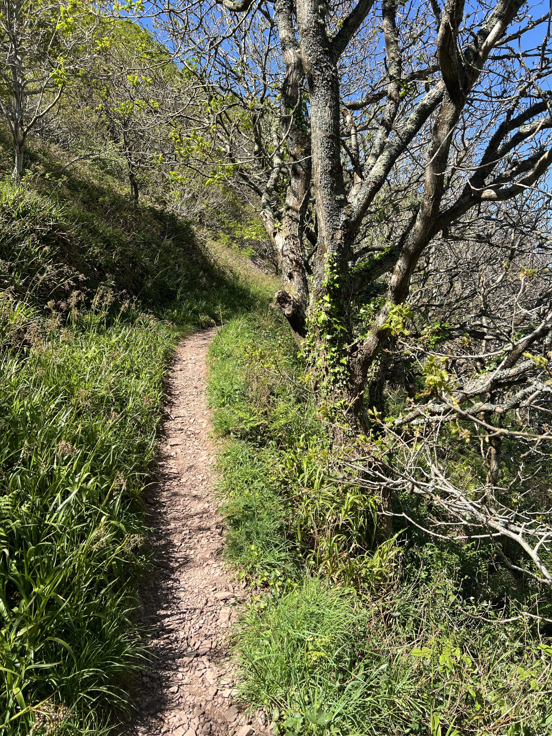 Bald verlässt der Pfad aber wieder die Zivilisation und schwingt sich zurück zur Küste, zunächst noch eben, dann zunehmend in dem beliebten Auf und Ab.