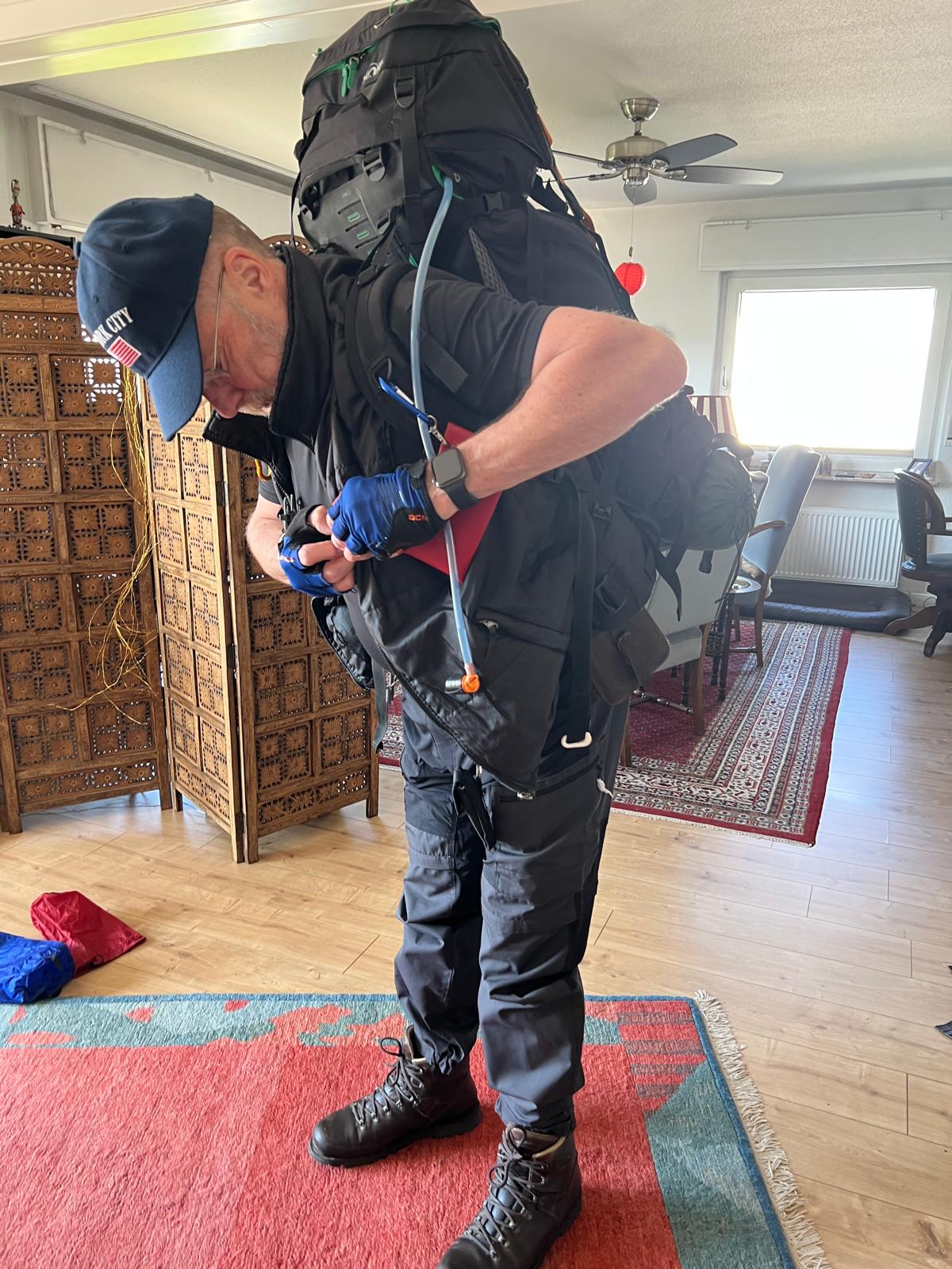 Da es sich um dabei aber um ein gutes und auf mich eingestelltes Modell handelt, drückt die Last nicht wie ein Sack Kartoffeln im Kreuz. Getragen werden muss sie trotzdem von Füssen, Knien, Muskeln, Bändern und Sehnen. Da wird es dann unterwegs zum Schwur kommen und die Wahrheit ans Licht.